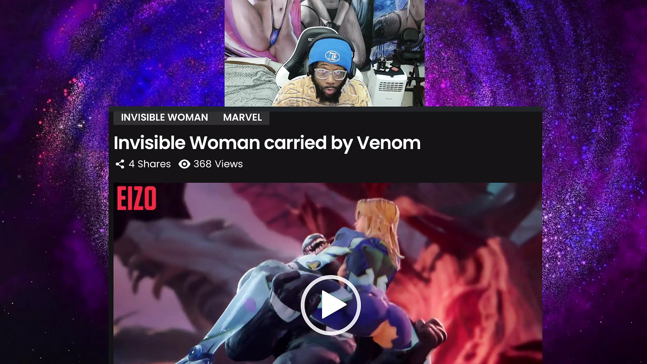 The Invisible Woman can't resist Venom's huge cock. She rides it hard and takes it deep in her bald pussy. He gives her a satisfying creampie that makes her cream all over.