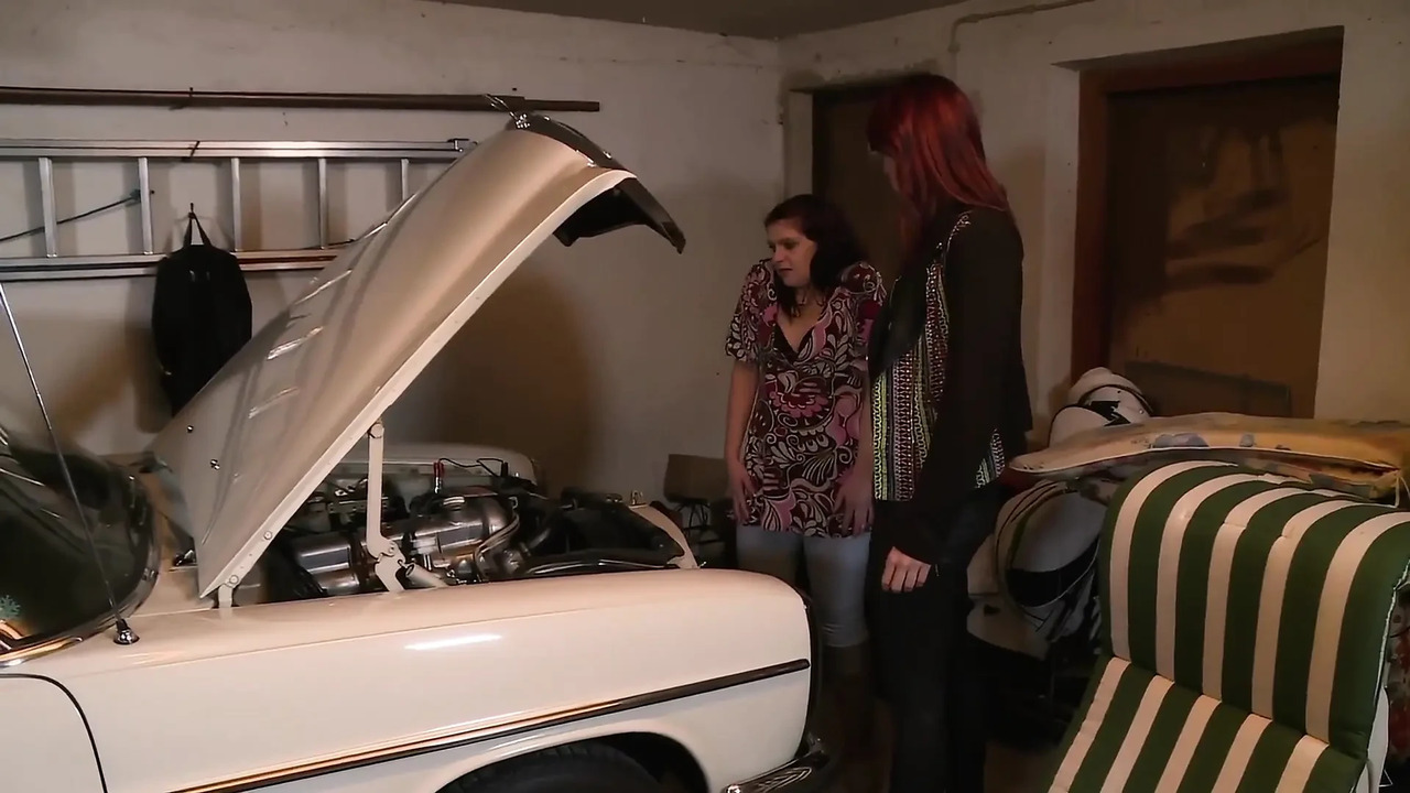 A garage mechanic gets wild with a horny milf and her big ass. They fuck her in the garage, and he cums inside her. She gets a creampie while he pounds her tight pussy.
