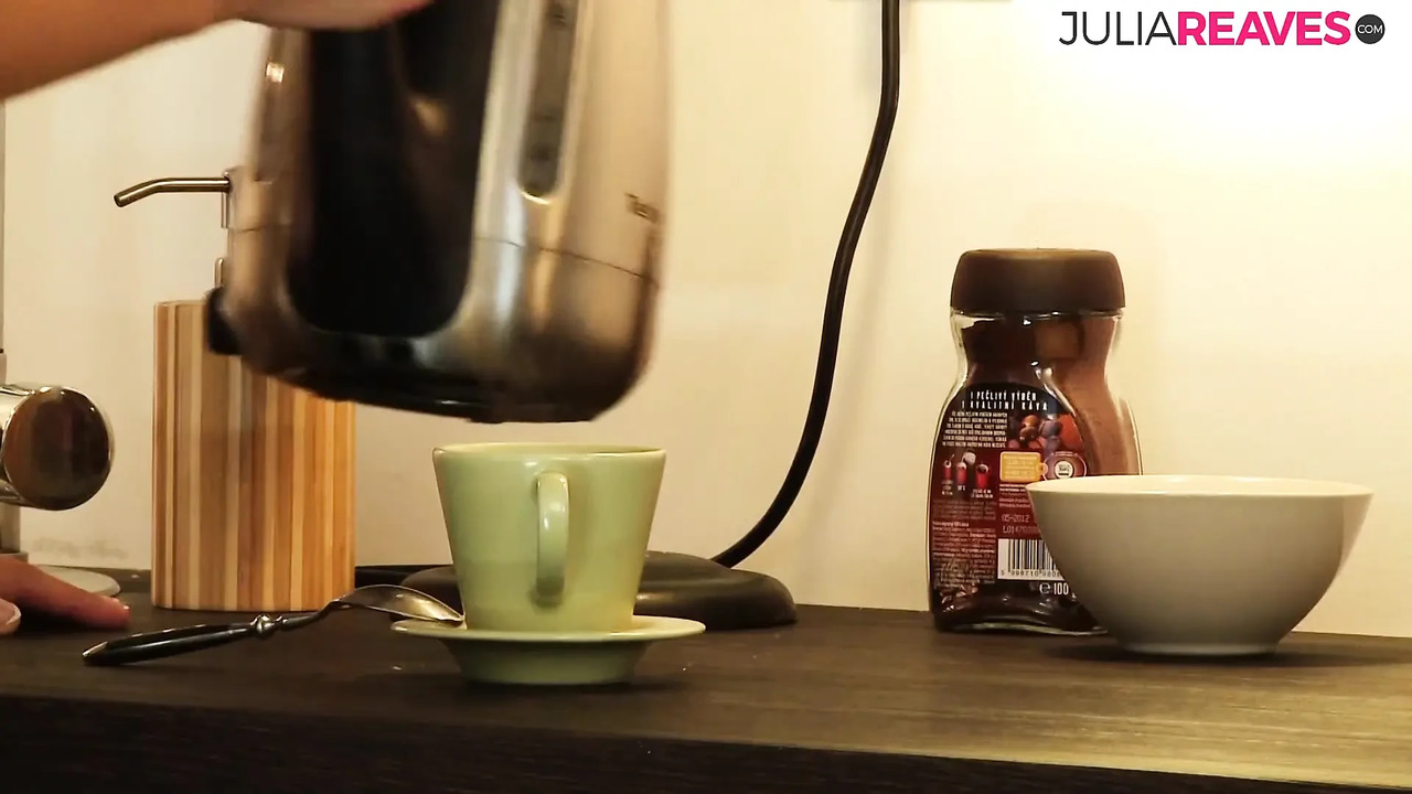 A hot, cute girl with sexy feet plays with a man's cutie pecker while kneeling on the kitchen floor. She then straddles him and grinds on his manhood, making him groan with pleasure.